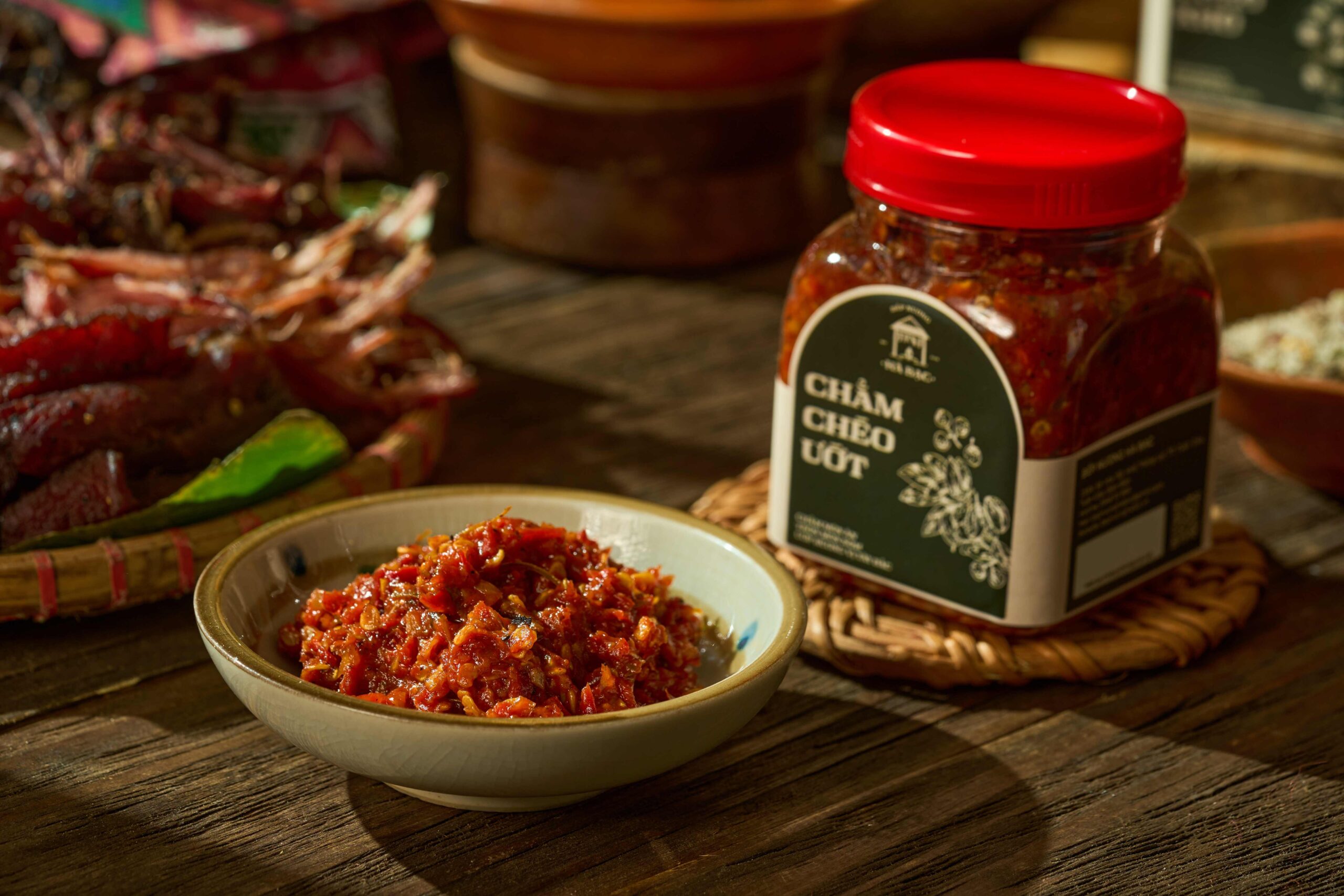 Bột canh, tỏi, ớt khô, mắc khén, lá chanh chế biến theo công thức gia truyền.